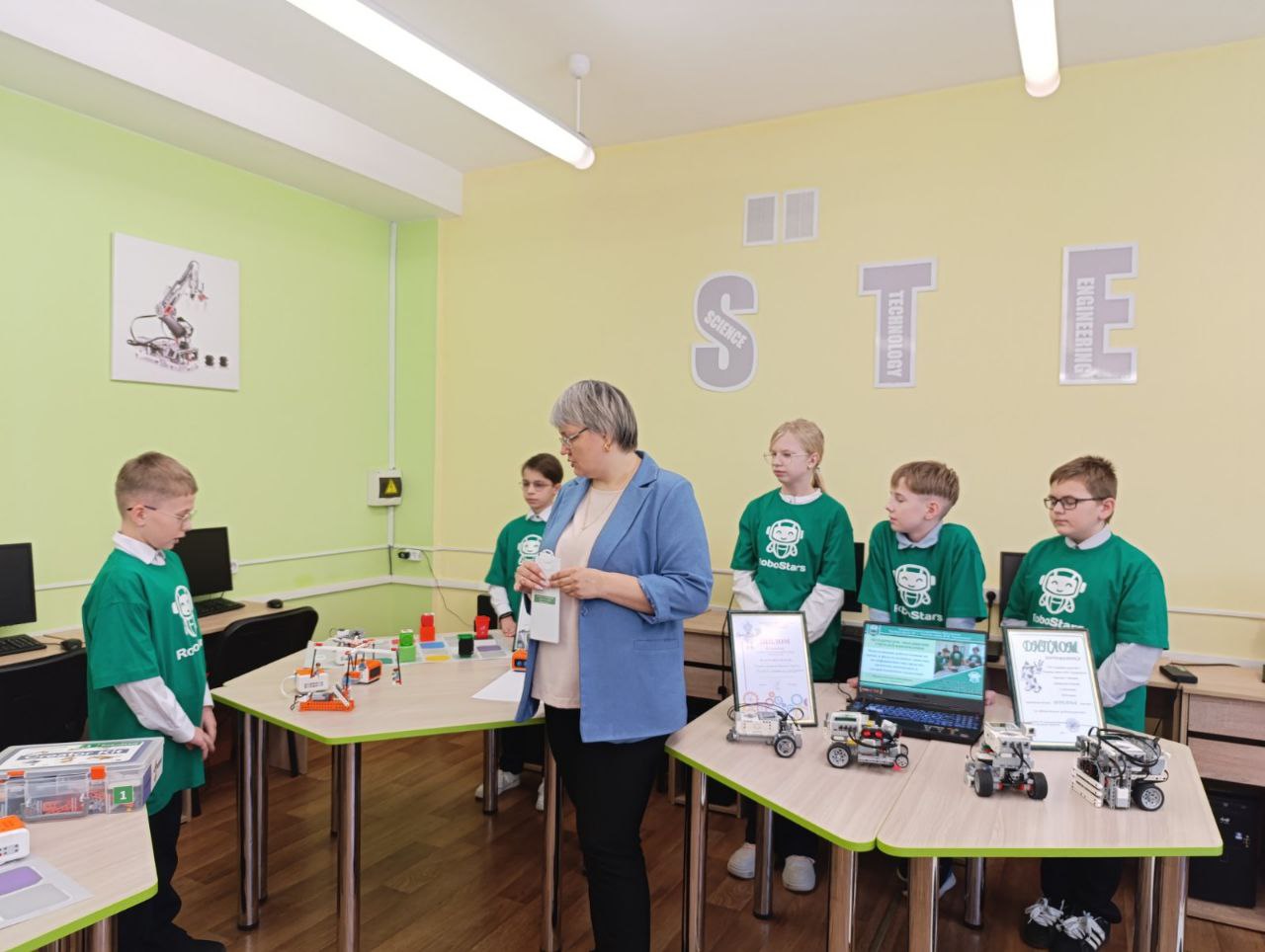 Мастер-класс по теме «Использование робототехники на уроках и факультативных занятиях по информатике как средство развития логического и алгоритмического мышления» провела учитель информатики государственного учреждения образования «Средняя школа № 1 г.Ошмяны имени М.М.Гружевского» Пилецкая Наталья Александровна. Команда учащихся ROBOSTARS продемонстрировали работу роботов.