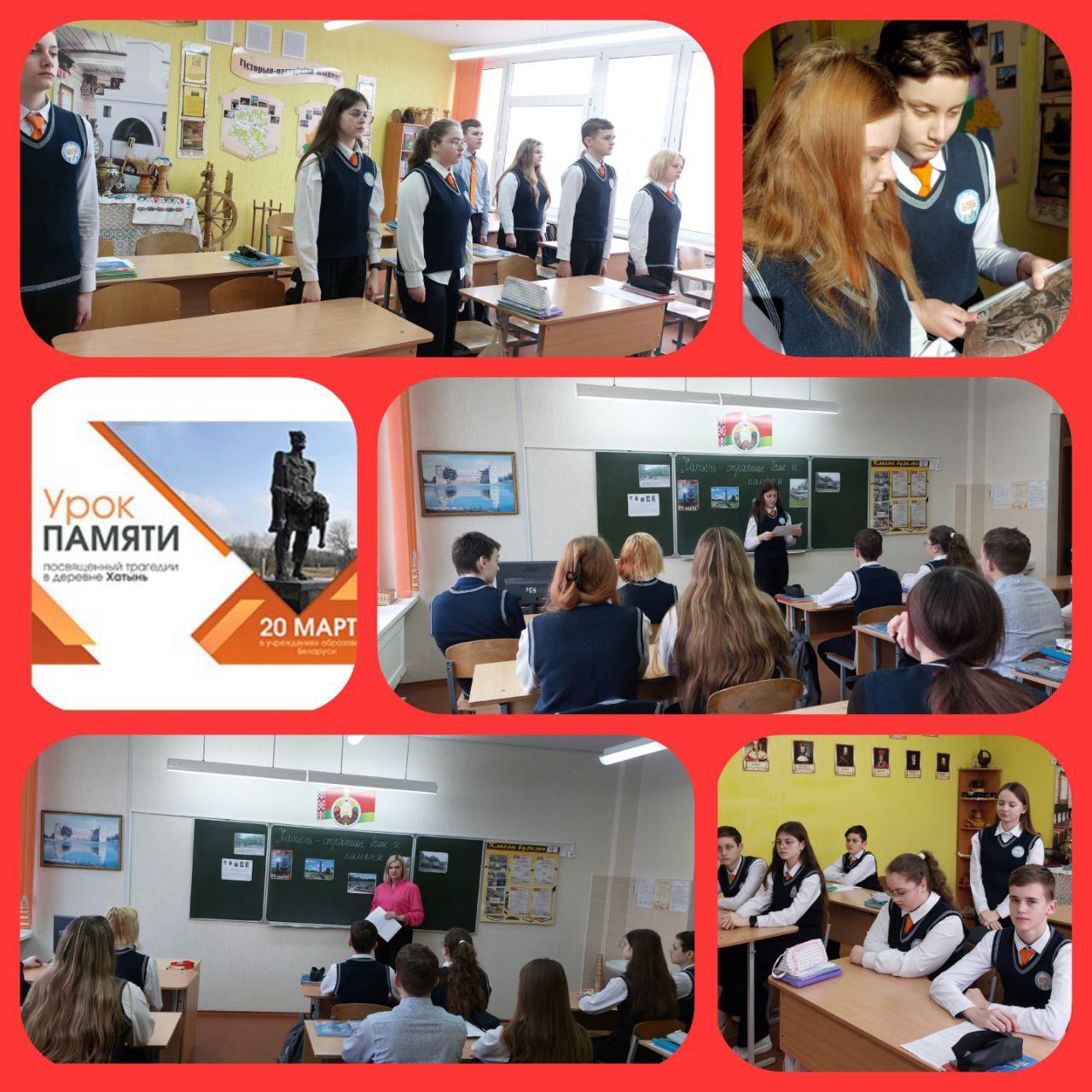 20 марта 2025 года в учреждениях образования прошли уроки Памяти, посвященные трагедии в Хатыни. Ученики узнали о важнейших событиях, произошедших в годы Великой Отечественной войны, и о том, как эта трагедия затронула судьбы людей. Уроки стали возможностью обсудить значение памяти и важность сохранения исторической правды.
