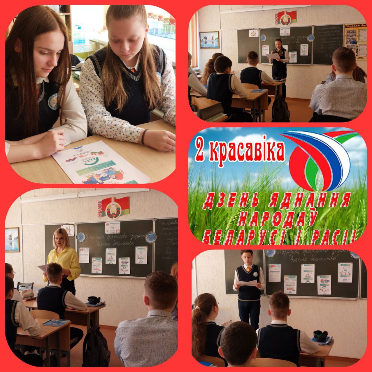 2 апреля 2025 года в учреждениях образования проходят единые уроки, посвященные Дню единения народов Беларуси и России. Данные уроки способствуют осознанию учащимися важности дружбы между народами Беларуси и России и подчёркивают значимость взаимопонимания и сотрудничества. В ходе занятий ребята узнали о богатой истории и культуре обоих народов, а также о совместных достижениях в различных сферах.