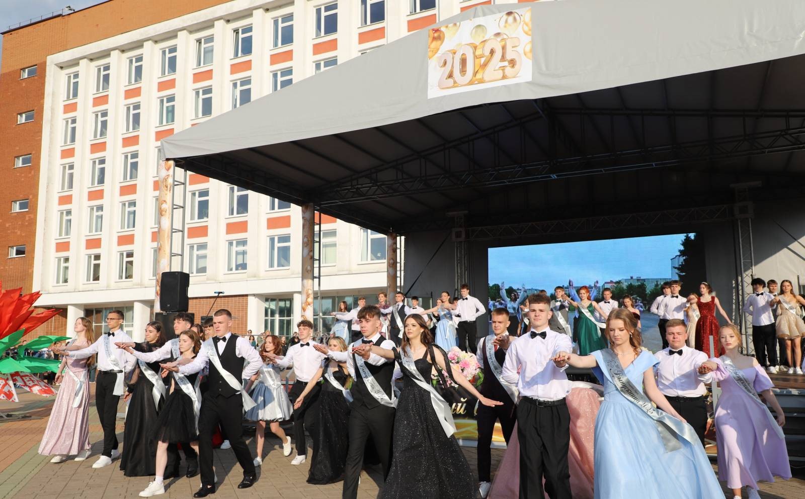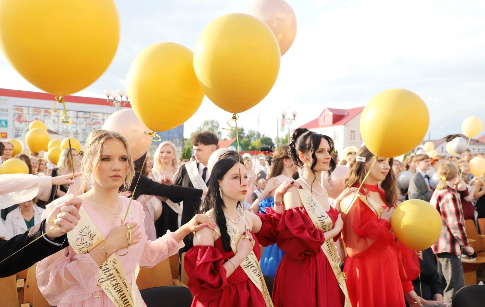 Выпускники раскрасили городскую площадь разноцветьем праздничных нарядов, ослепительными улыбками, юностью и энергией. Бурными овациями встречали ошмянцы каждый выпускной класс.