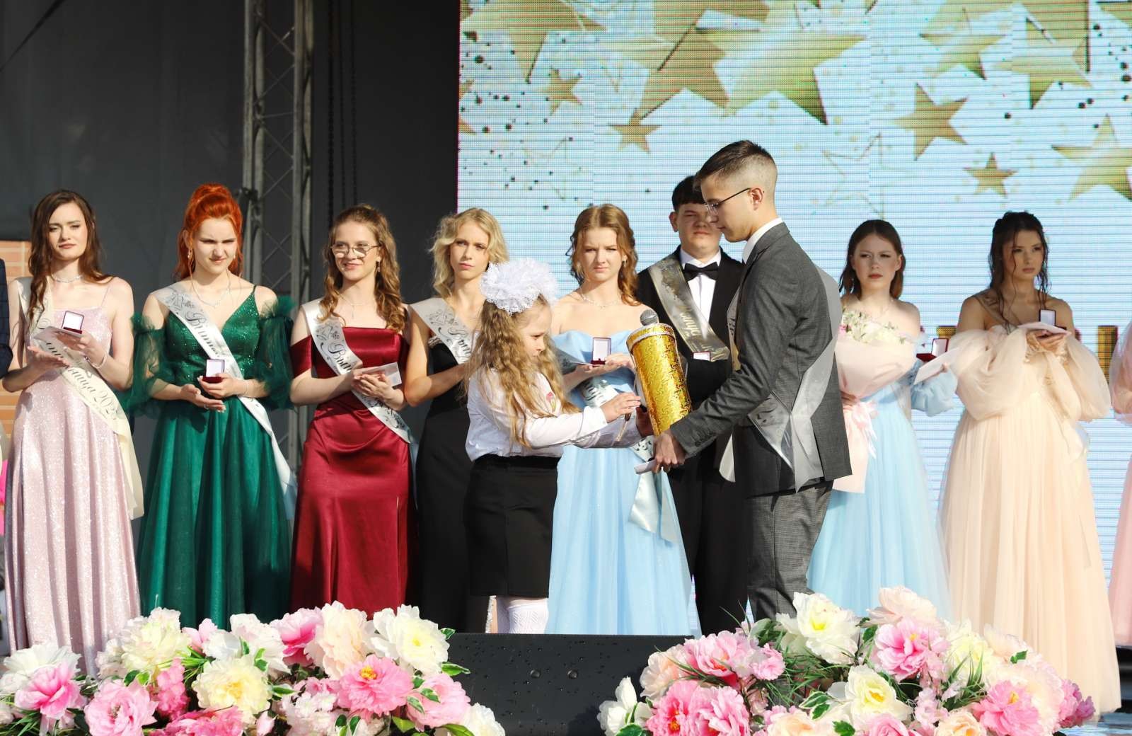 Праздник прощания со школой раскрасили лучезарные улыбки, песни и, конечно, трогательный школьный вальс в исполнении виновников торжества.