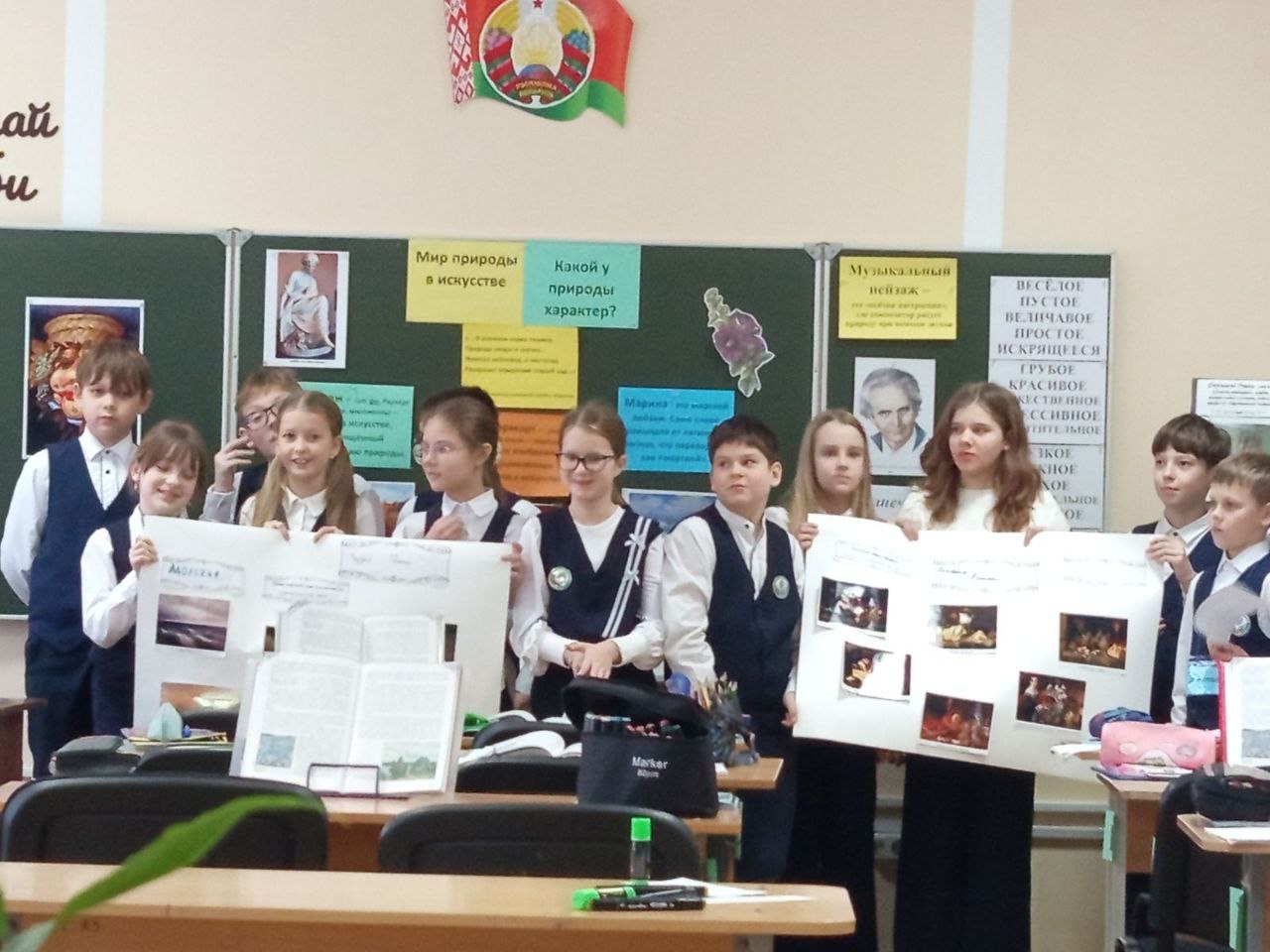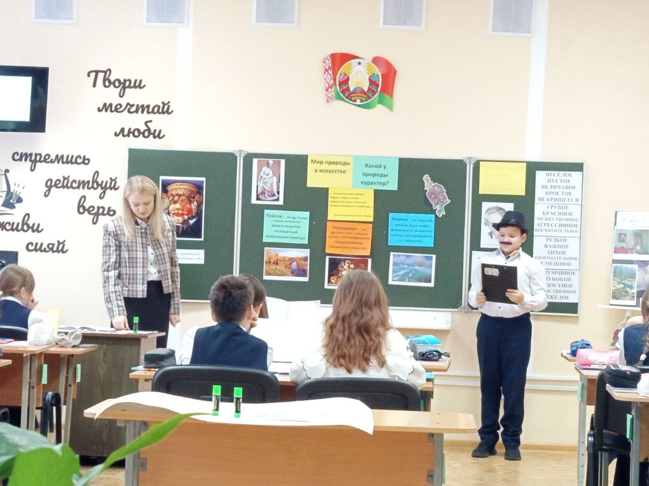 Открытый урок в V классе по теме «Какой у природы характер?» провела Давидович Т.Е., учитель искусства ГУО «Гимназия № 1 г. Ошмяны». На учебном занятии были продемонстрированы современные методы, приемы и технологии, обеспечивающие продуктивную учебно-познавательную деятельность учащихся на учебных занятиях по отечественной и мировой художественной культуре.