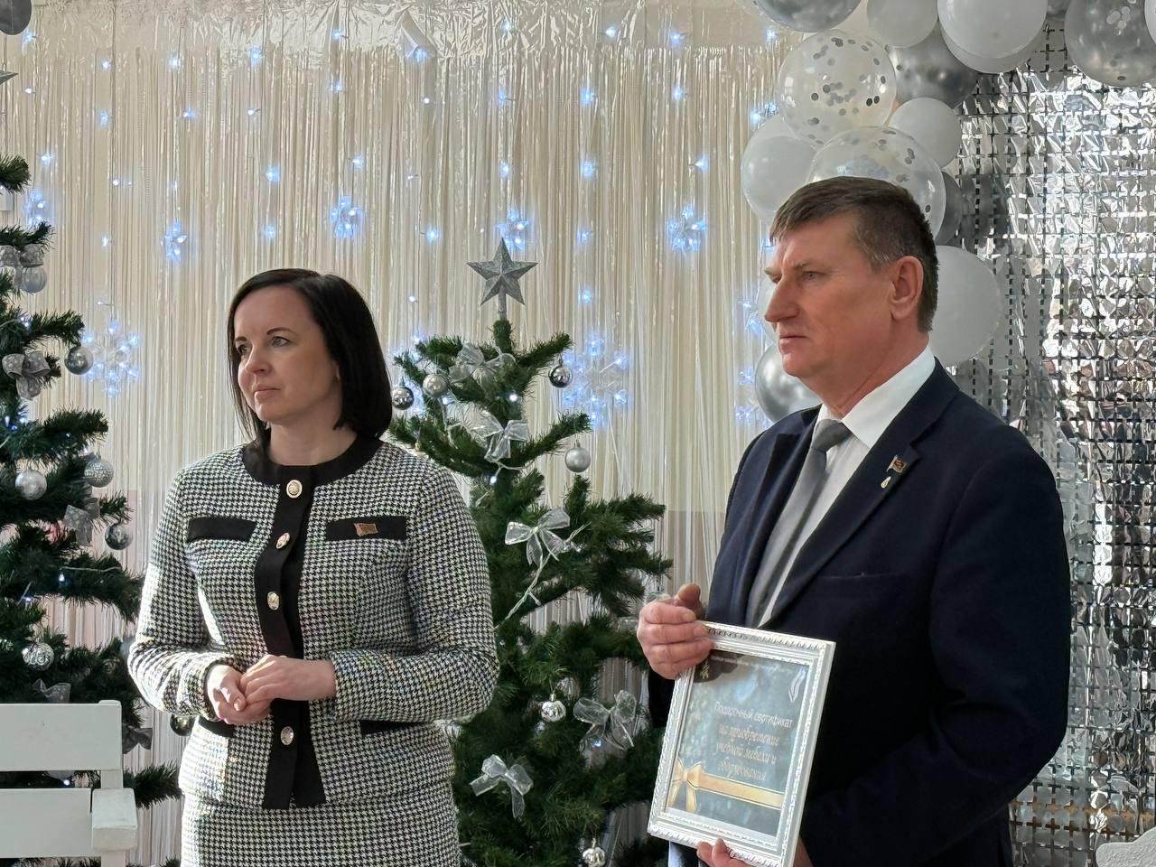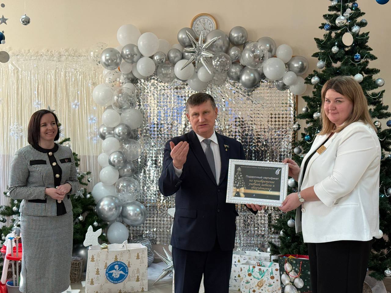 Поздравить ребятишек и их родителей, а также педагогов центра с наступающим Новым годом приехали председатель районного Совета депутатов, председатель Ошмянского районного отделения партии «Белая Русь» Юрий Карпович и заместитель председателя райисполкома Анна Язель.