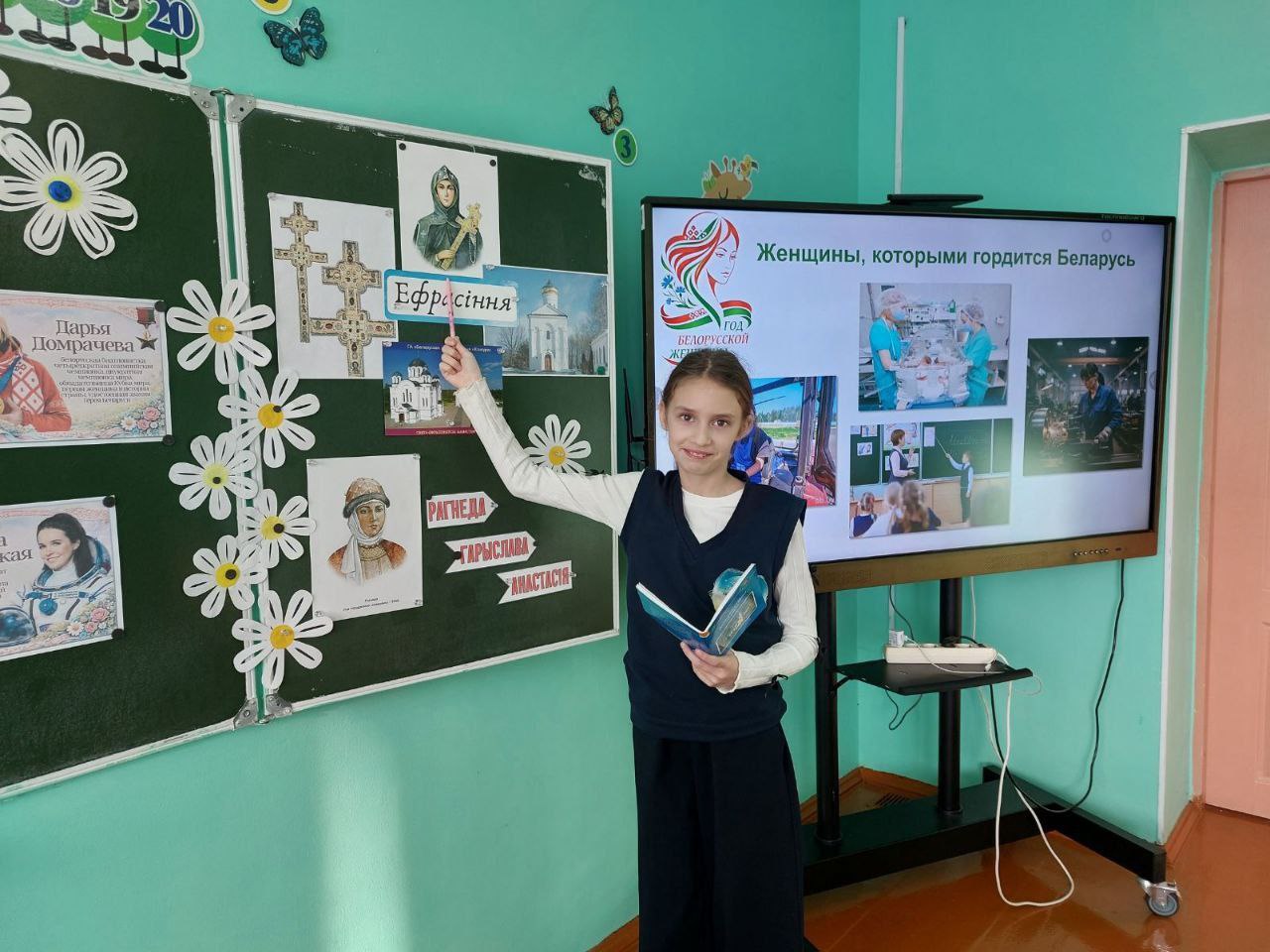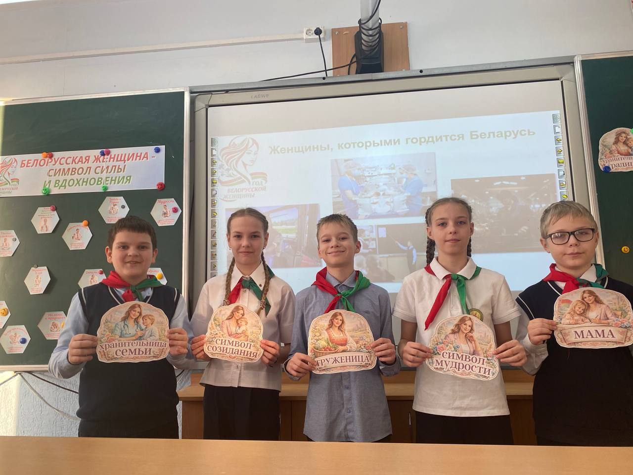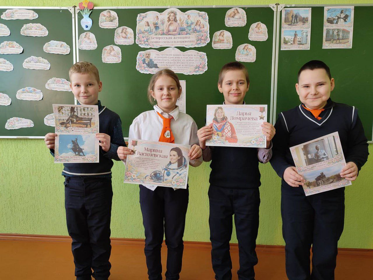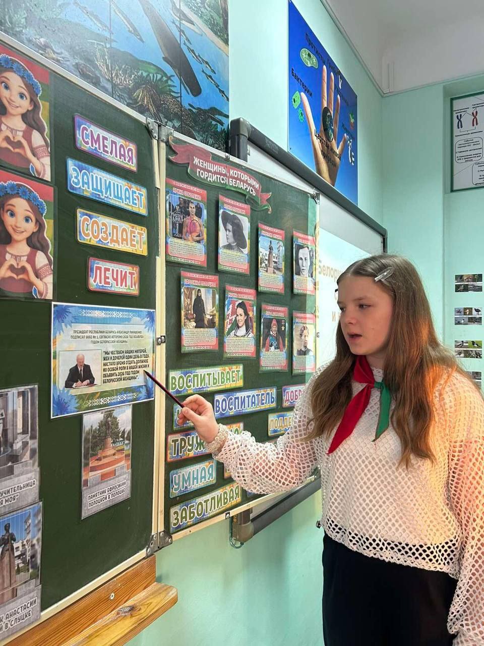 Учащиеся говорили о выдающихся представительницах Беларуси, чьё мужество, талант и жизненная энергия служат источником вдохновения для многих поколений. Белорусская женщина — это надёжная опора государства, символ мудрости, стойкости и созидания.