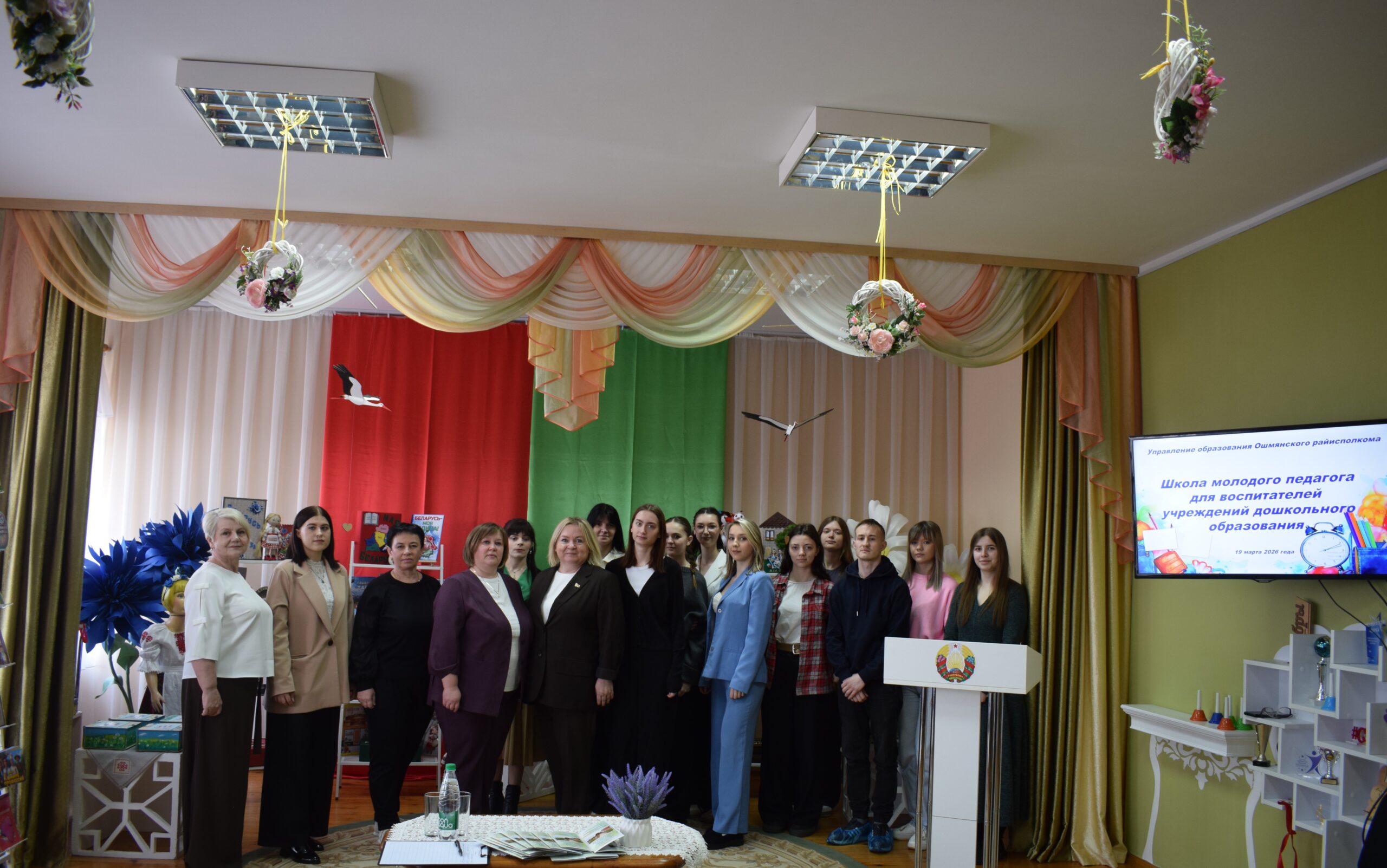 Молодых педагогов поприветствовалА Ковалицкая Анна Михайловна, заведующий ГУО «Гольшанский детский сад». Главный специалист Управления образования Ошмянского районного исполнительного комитета, Загорская Жанна Павловна, выступила с докладом «Организация идеологической и воспитательной работы в учреждениях дошкольного образования». Своим богатым опытом и неиссякаемой энергией делилась с участниками Евдокимова Людмила Олеговна, воспитатель дошкольного образования высшей квалификационной категории ГУО «Детский сад №3 г.Ошмяны», рассказала коллегам о совершенствовании развивающей предметно-пространственной среды в контексте гражданско-патриотического воспитания. Александрович Марина Зигмундовна, заместитель заведующего по основной деятельности ГУО «Гольшанский детский сад», осветила вопрос «Трудовое и профориентационное воспитание. Ознакомление с рабочими специальностями взрослых как условие ранней профориентации и трудового воспитания детей дошкольного возраста». Молодым специалистам представилась возможность познакомиться с развивающей предметно-пространственной средой в групповых комнатах и кабинетах. Школа молодого педагога стала уникальной возможностью для молодых специалистов перенять бесценный опыт работы у опытных коллег, а для всех нас – обменяться идеями и найти новые пути развития.